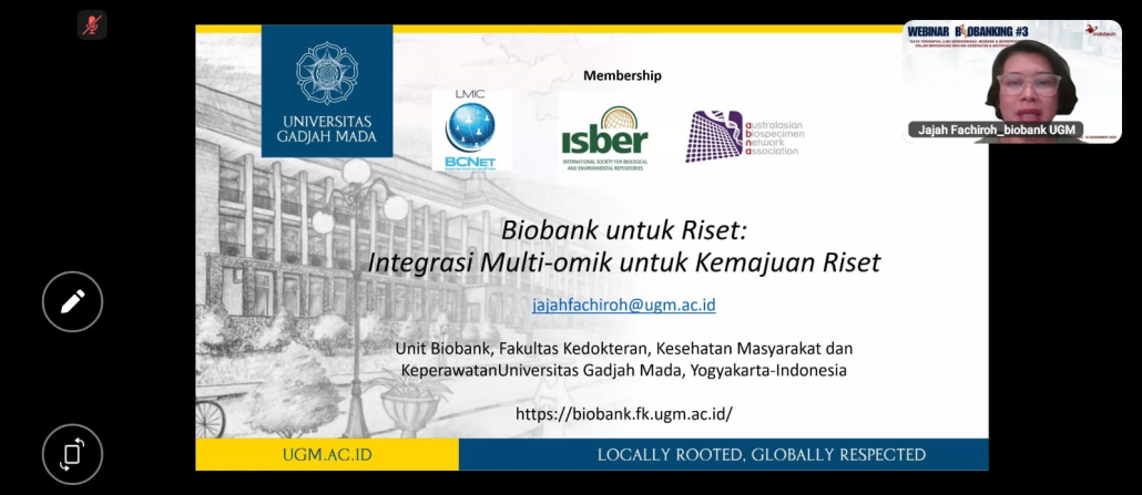 Biobank Fakultas Kedokteran, Kesehatan Masyarakat, dan Keperawatan (FK-KMK) Universitas Gadjah Mada turut berkontribusi aktif dalam pengembangan ekosistem biobank nasional melalui partisipasi sebagai narasumber pada Webinar Biobanking #3 yang diselenggarakan oleh PT Indotech Scientific. Kegiatan bertajuk “Data Tersimpan, Ilmu Berkembang: Biobank & Biorepository dalam Mendukung Inovasi Kesehatan & Bioteknologi” ini dilaksanakan secara daring melalui Zoom pada Kamis, 18 Desember 2025.