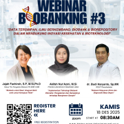 Webinar ini juga menghadirkan narasumber lain dari sektor laboratorium kesehatan dan layanan klinis yang membahas implementasi teknologi otomasi biobank serta peran biobank dalam mendukung pelayanan diagnostik masa depan. Diskusi yang berlangsung menunjukkan bahwa tantangan pengelolaan biosampel secara manual masih menjadi isu di banyak institusi, sehingga penguatan sistem dan standardisasi biobank menjadi kebutuhan mendesak.