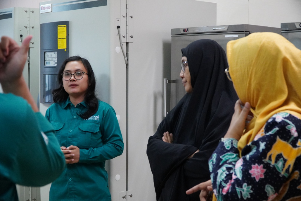Dalam kunjungan tersebut, peserta diperkenalkan secara langsung dengan fasilitas, alur kerja, serta penerapan standar GCLP di Laboratorium Biobank. Tim Biobank mendampingi peserta, memberikan penjelasan teknis mengenai prosedur manajemen sampel, pengendalian mutu, serta sistem informasi yang digunakan.